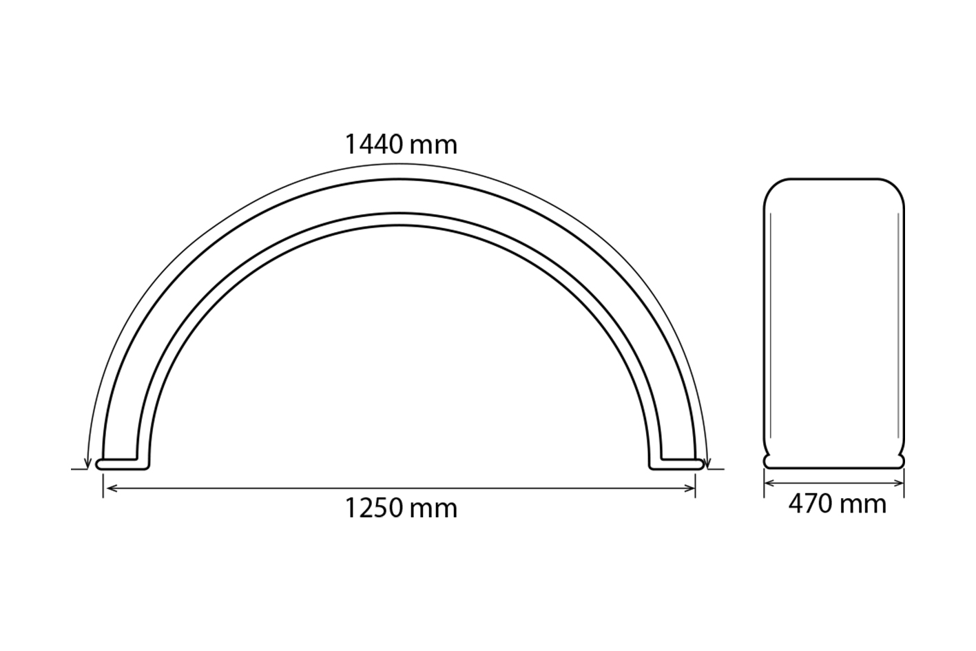 Compatible for Ford New Holland 40 and TS Series tractors Ford 7840 8240 8340. Width: 470mm, Curve: 1440mm, Length: 1250mm. Also suits 470mm applications. Min Qty: 2